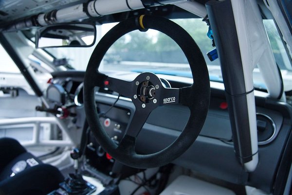 > Up to date 4.0 Electric SPA Design fire system, current Schroth racing belts, Sparco Circuit II Halo racing seat, new Sparco 345 Competition steering wheel on a Joe’s quick release, BSCI roll bar padding
