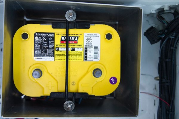 > Optima Yellow Top battery relocated to cabin for weight distribution, with CTek battery maintainer system